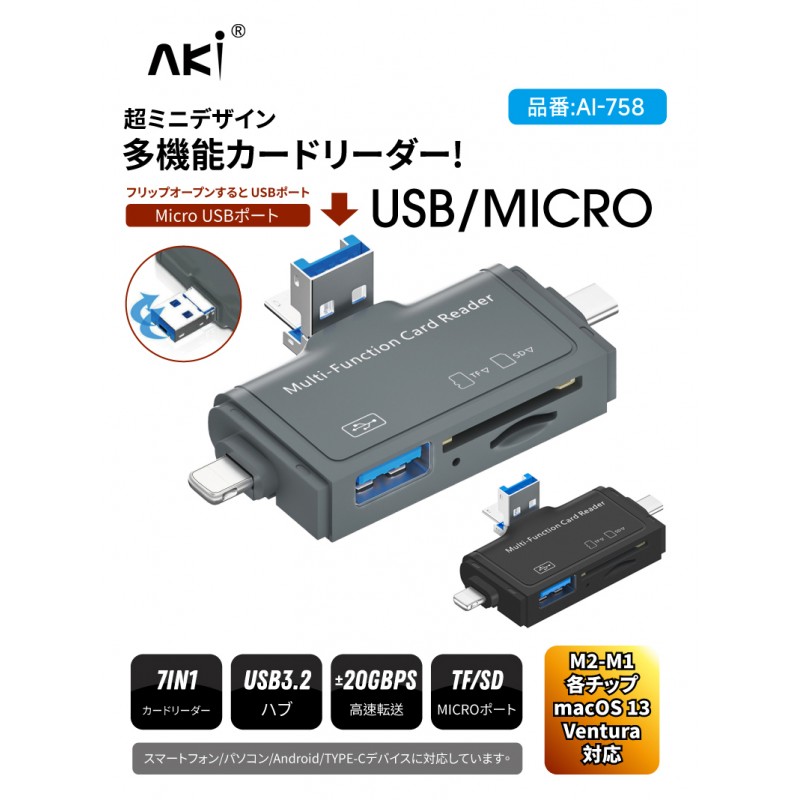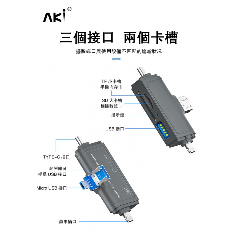 AKI AI-758 讀卡器 多功能七合一便攜 適用於蘋果 安卓手機及電腦 USB 讀卡器 OTG 轉接