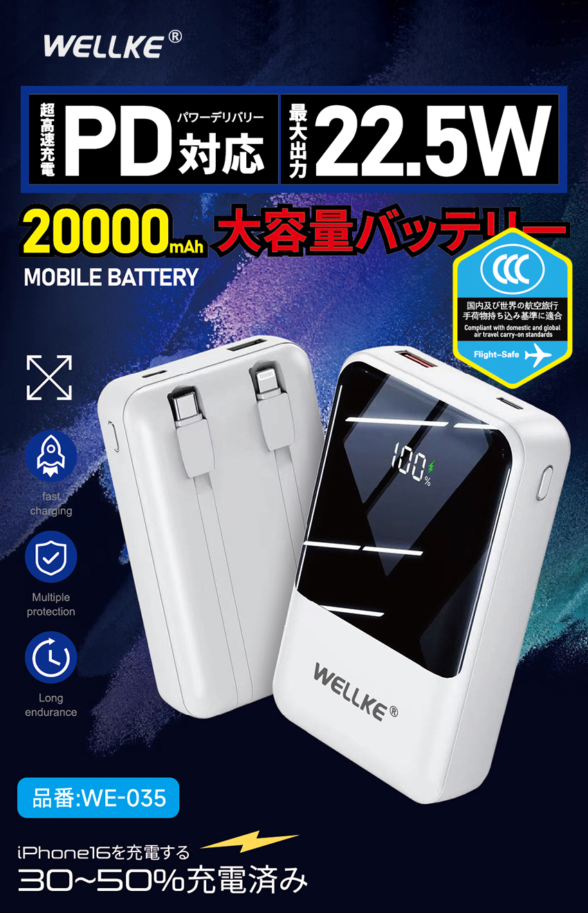 20000mAh大容量